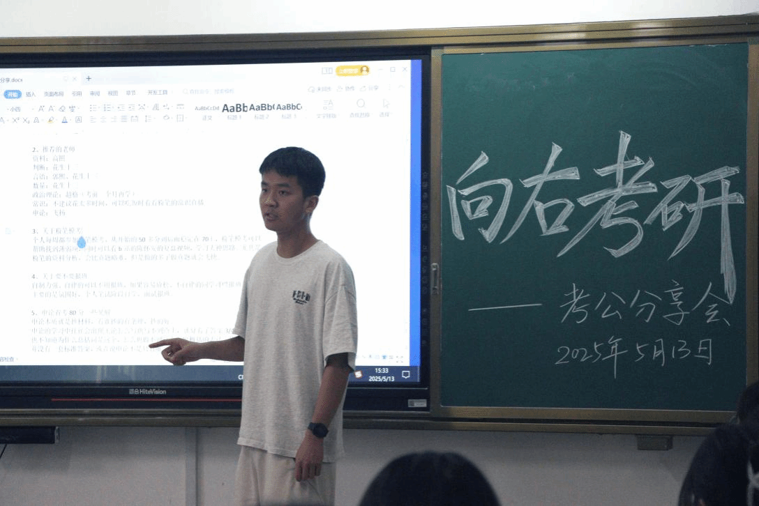 2025年5月13日,全讯白菜网002在诚信楼110、111教室举办“向左考公・向右考研”经验分享会,邀请多位成功考取公务员及研究生的优秀学长学姐现场分享备考经验,吸引了百余名学生参与。活动旨在帮助2025届学子科学规划升学就业路径,缓解备考焦虑,提升应试能力。