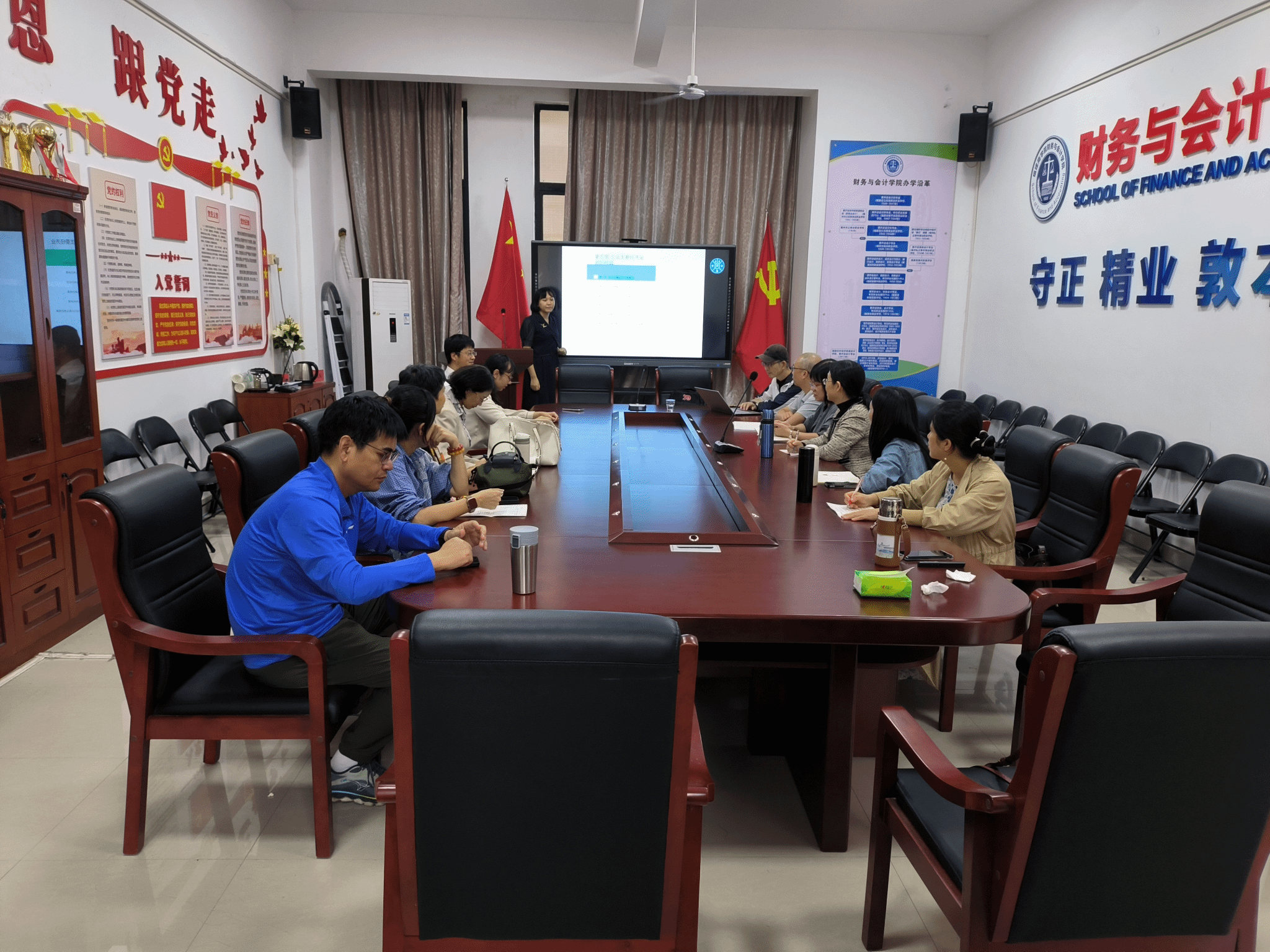 2025年10月21日下午,会计系全体教师在勤敏楼210会议室开展“深耕教学创新,赋能课堂提质”教研活动,由会计系主任俞清金老师主持,与会教师围绕青教赛标准与2026版人才培养方案修订展开研讨,学校督导组陈珠芳老师指导。